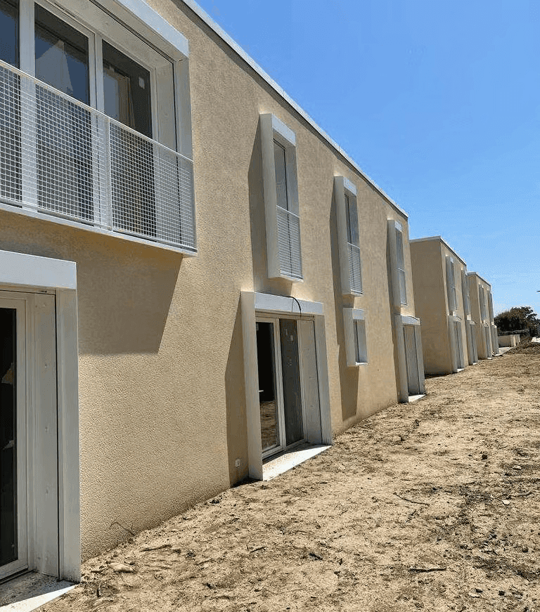 Des enduits appliqués sur des habitations neuves pour une finition solide et esthétique.